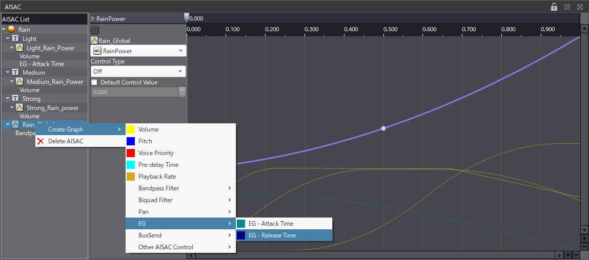 The AISAC graph determines how a value from the game will map to various sound parameters of the tracks.
