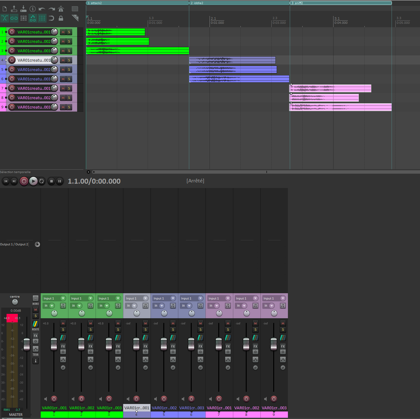 In this post, we will design a simple audio system for a creature. The sounds it produces will depend on a game parameter that describes the creature’s state. In our example, the creature will have three distinct states, as shown in the video below. You can, of course, add other states based on your specific gameplay.